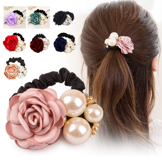 ■【メール便/送料無料】ローズ パール ビジュー エレガンス ヘアゴム シュシュ*ヘアアクセサリー[即納即日発送あす着]