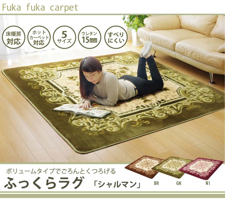 ■カーペット ラグ マット ボリュームタイプ 2畳 エレガンス シャルマン HCC グリーン 185×185cm(代引不可)【送料無料】