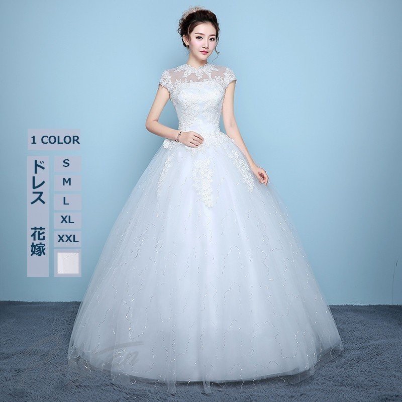 ■ウェディングドレス ブライズメイドドレス ワンピース 大きいサイズ エレガンス 花嫁ドレス 花嫁 結婚式 披露宴 体型カバー ホワイト レ