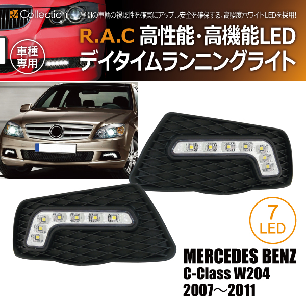 ■【在庫限】メルセデスベンツ C-クラス W204 エレガンス 2007-2011 R.A.C エアインテイク付 LED デイライト(商品コード:500316)