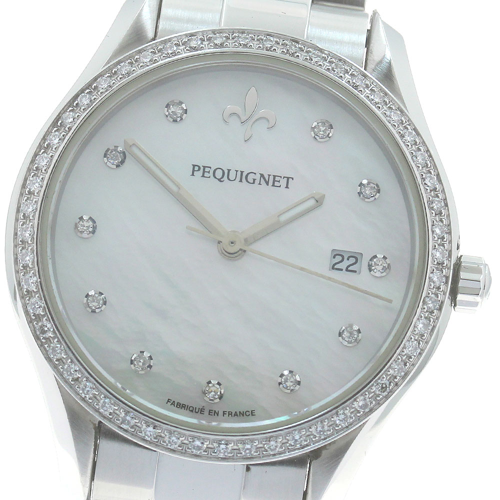 ■ペキネ Pequignet 8000509CD エレガンス 11Pダイヤ クォーツ レディース 良品 _870766【ev20】