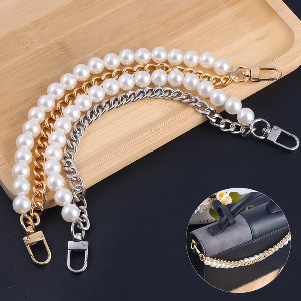 ■パールハンドル付きハンドバッグチェーン,交換用メタルショルダーストラップ,ハンドバッグアクセサリー,1個