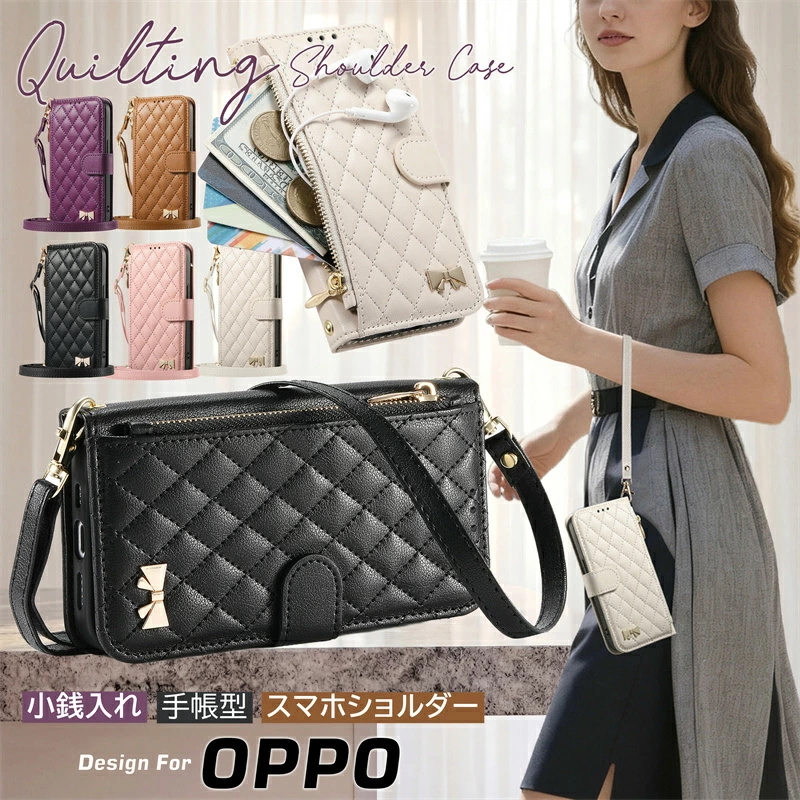 ■oppo reno 13a ケース スマホショルダー キルティング OPPO A55 G Reno13 A Reno11 A Reno9 7Aケース 手帳型 リボン おしゃれ かわいい