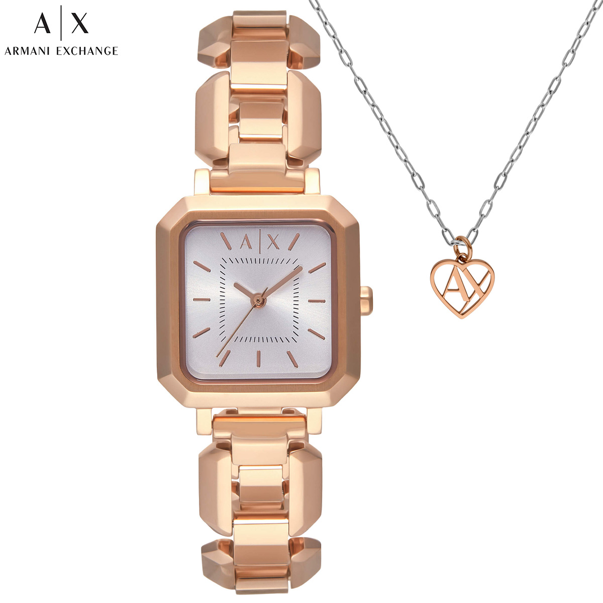 エレガンスと機能性が見事に融合した、27mmのArmani Exchangeのローズゴールドトーンウォッチ。洗練された三針クォーツムーブメントを搭載し、スリークなレクタングル形ケースにきらめくシルバートーンのサンレイダイヤルを組み合わせた、モダンな女性にぴったりのタイムピースです。ローズゴールドトーンのステンレススチールブレスレットがラグジュアリーな魅力を添える、あらゆるシーンで活躍するアクセサリーです。こちらのウォッチには耐久性に優れたミネラルクリスタルを使用し、スタイリッシュなルックと保護を両立しています。【A X アルマーニ エクスチェンジ ARMANI EXCHANGE 2025 新作】
