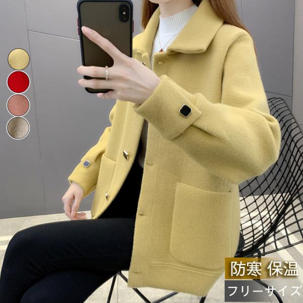 ■セール チェスターコート レディース コート ショート丈 シングル ラシャ アウター 無地 韓国風 カジュアル 秋冬 ゆったり 厚手 保温 フ
