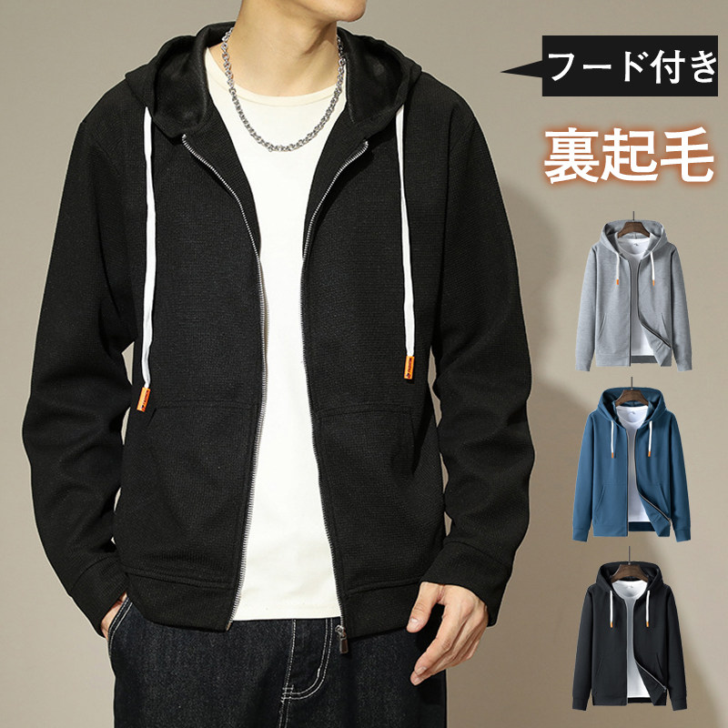 ■パーカー メンズ ジャージ 裏起毛 前開き ジャケット シンプル 無地 ジッパー プルオーバー フード付き マウンテンパーカー 防
