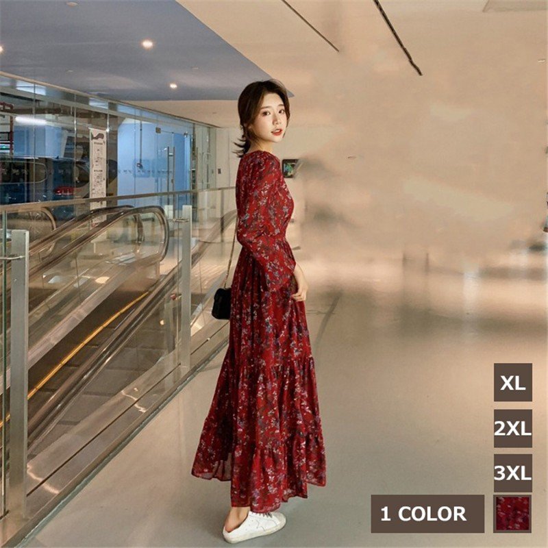 ■レディース 春夏 ワンピース ゆったり ロング丈 シフォンワンピース 花柄 エレガンス 20代 30代 着痩せ お呼ばれ お出かけ 二次会 体型カ