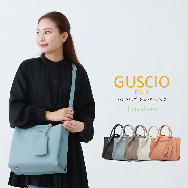 ■2WAY ハンドバッグ ショルダーバッグ ミニポーチ付き かばん 17-1033【GUSCIO グッシオ】女性 レディース エレガンス 高見え フェイクレ