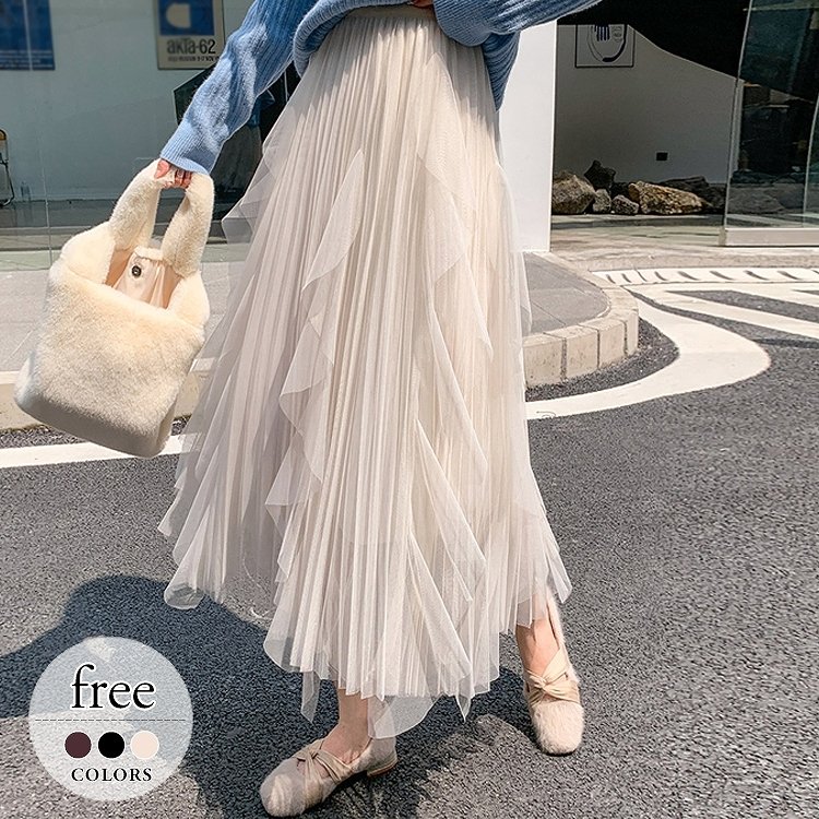 ■スカート ボトムス レディース チュールスカート ふんわり ガーリィ エレガンス 大人カジュアル ホワイト ブラウン ブラック ベーシック