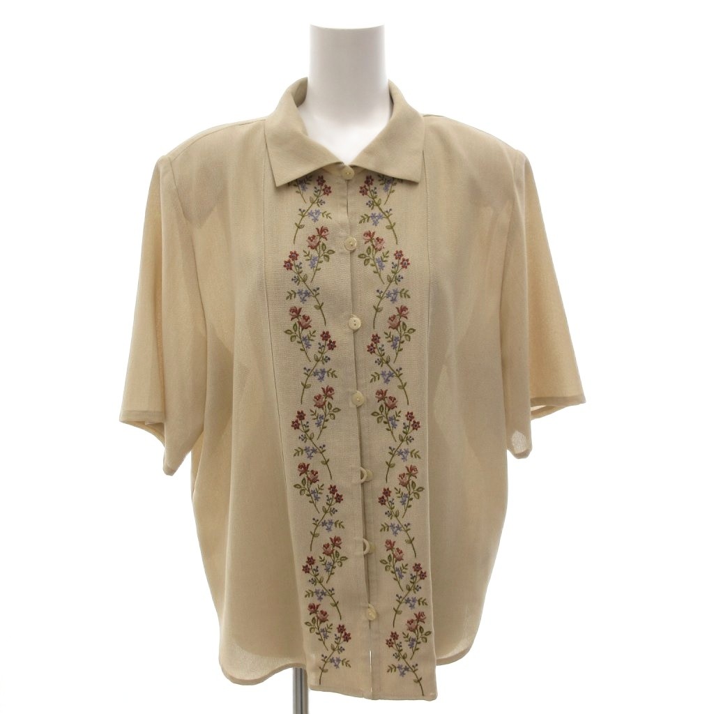 ■【中古】エレガンス elegance ブラウス シャツ 15R ベージュ 花柄刺繍 半袖 /FF レディース