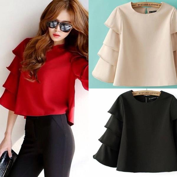 デザインに個性がいっぱい☆ゆったりエレガントなトップス☆☆個性的デザインのトップスのご紹介☆カラーはシンプルに、デザインに個性を。こちらの商品は袖のデザインが凝っていて人目を惹きつけます。無地でシンプルだからこそ華やかデザイン。デニムに、かっちりパンツに。さまざまなコーデを楽しんでください!トップスTシャツ・カットソー・タンクベルスリーブ ティアード クルーネック カットソー 無地 七分袖/無地/七分袖/クルーネック/ミディアム//ブラック/レッド/ベージュ【M】【L】※ノーブランドこの商品情報はLondon Bridgeが作成しております。