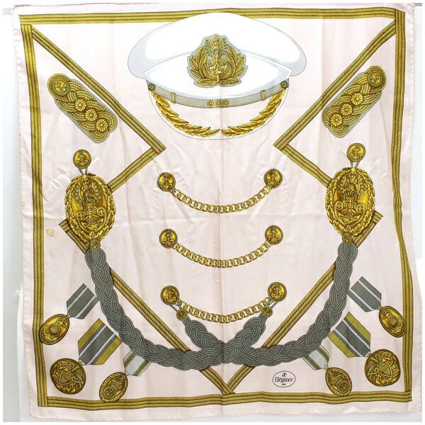 ■エレガンス シルク スカーフ ピンク 勲章柄 中古 BCランク Elegance| レディース 女性用 セーラー帽