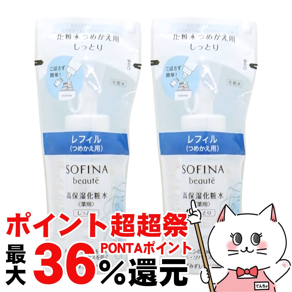 ■【ポイント超超祭 最大36%還元】[2本セット]花王ソフィーナ ソフィーナボーテ 高保湿化粧水 薬用(しっとり)つめかえ用 130ml[医薬部外品