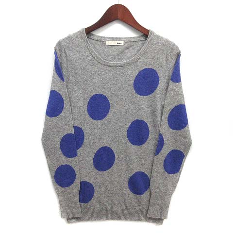 ■【中古】ジェンヌ jeune カシミヤ アンゴラ混 ニット ドット セーター 長袖 グレー レディース