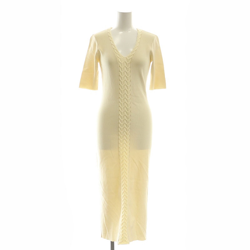 ■【中古】ジェンヌ JENNE 23SS フロントケーブルニット タイトワンピース ミモレ ロング 五分袖 S アイボリー