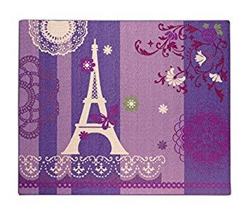 ■イケヒコ デスクカーペット 女の子 エッフェル柄 『ジェンヌ ツー』 パープル 約110×133cm