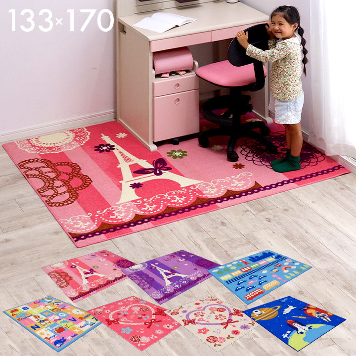 ■【学習机用/133x170】デザインデスクカーペット ゆったりサイズ デスクマット ラグ カーペット 子供用ラグ 女の子 男の子 子供部屋 学習