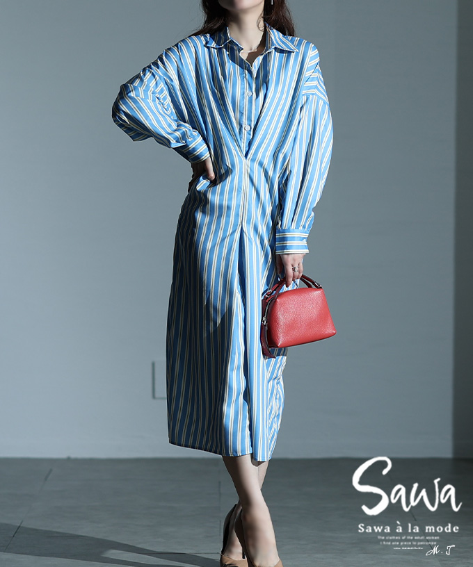 品番: sawa-9854商品名: 大人ジェンヌにキマるストライプ柄シャツワンピース商品カテゴリー: レディースファッション ワンピース シャツ ワンピース袖丈/着丈: 長袖 ミモレ丈カラー(柄): ブルー 青 ストライプ柄特徴: タック 変形 レギュラーカラー ドロップショルダー カフス ボタン季節: 春 秋 春服 秋服レディースファッション 30代ファッション 40代ファッション 50代ファッション 60代ファッション きれいめ 上品 大人可愛い 大人 可愛い かわいい おしゃれ 30代 40代 50代 60代 レディース ミセス ミセスファッション 韓国ファッション大人可愛い 洋服 レディース ファッション サワアラモード sawaalamode