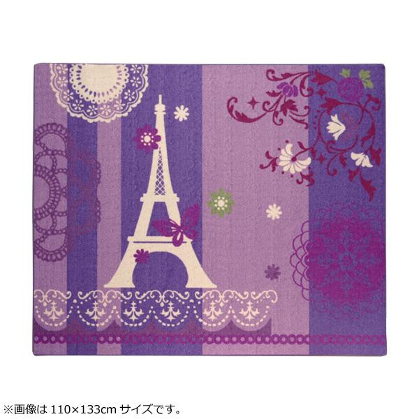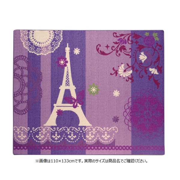 ■デスクカーペット 女の子 約133×170cm パープル エッフェル柄 平織 「ジェンヌ」 【北海道・沖縄・離島 送料別】