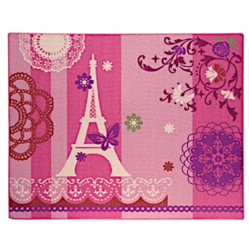 ■デスクカーペット 女の子 約110×133cm ピンク エッフェル柄 平織 「ジェンヌ」 【北海道・沖縄・離島 送料別】