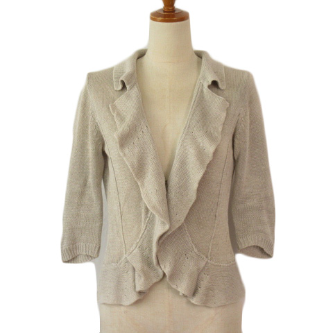 ■【中古】ALDRIDGE JEUNE アルドリッジ ジェンヌ カーディガン ニット フリル リネン 38 ベージュ レディース