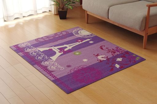 ■イケヒコ デスクカーペット 女の子 エッフェル柄 ジェンヌ ツー パープル 約110×133CM #4720829
