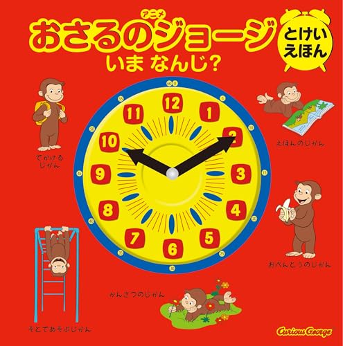 ファン待望! おさるのジョージと 学べる楽しい時計絵本が登場! 時計のはりが動かせるから、 遊び感覚で時計の読み方を覚えられる! ■ストーリー なかよしのアリーと一緒に、幼稚園に遊びに行くことになったジョージ。幼稚園では、時間に合わせて絵本のお話を聞いたり、砂遊びをしたり、お昼ご飯を食べたり……。幼稚園での1日を楽しみます。 ■時計の使い方 時計のはりは、長いはりと短いはりを別々に動かすことができます。 見開きごとに、時間を示すシーンが描かれていて、「いまは 7じ。そろそろ でかける じかんです」「8じです。ジョージと アリーは、バスのりばで ようちえんのバスを まちます」など、生活の時間に合わせてストーリーが展開されていくので、お子さまの生活時間に合わせて説明すれば、スムーズに時計の読み方を覚えることができます。 見開きにはかならず、小さな時計の絵が描かれているので、その絵を見ながら、時計のはりを合わせることもできます。