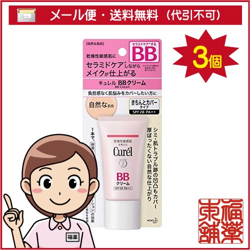 ■キュレル ベースメイク BBクリーム [自然な肌色] 化粧下地 ファンデーション 保湿UVカット (35g) × 3個 [ゆうパケット・送料無料]