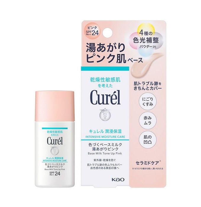 ■花王 キュレル 潤浸保湿 色づくベースミルク 湯あがりピンク SPF24・PA++ 30ml【メール便発送可】