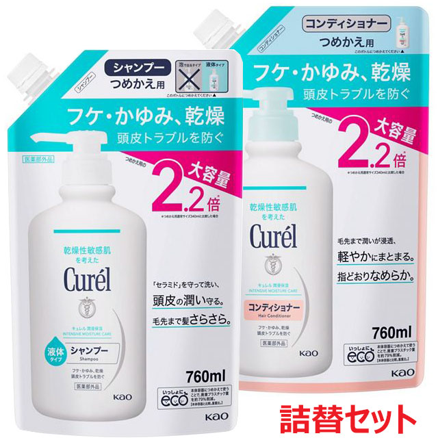 ■【セット販売】【医薬部外品】キュレル シャンプー つめかえ用大容量 760ml・キュレル コンディショナー つめかえ用大容量 760ml