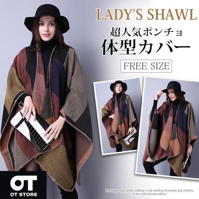 ■大判ストール ポンチョ マフラー チェック柄 レディース マフラー 秋 冬 ブランケット マントコート ショール ケープ 肩掛け マフラー 大