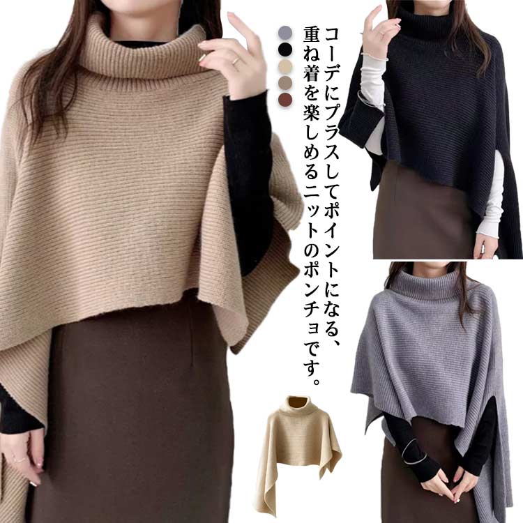 ■ニットベスト ベスト ポンチョ 羽織り ハイネック スリット 変形 ニットトップス ハイネック ニット ベスト アレンジ ケープ マント スト