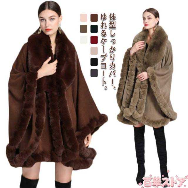 ■ファー付きケープコート 全9色 洗える レディース アウター コート ファーコート マント ポンチョ 羽織 かわいい レディース 大人 ケープ