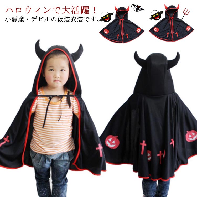 ■3点セット!ハロウィン 衣装 子供 悪魔 仮装 ケープ ベビー服 コスプレ 衣装 キッズ 赤ちゃん 角 コスプレ 悪魔の耳 かぼちゃバッグ フー