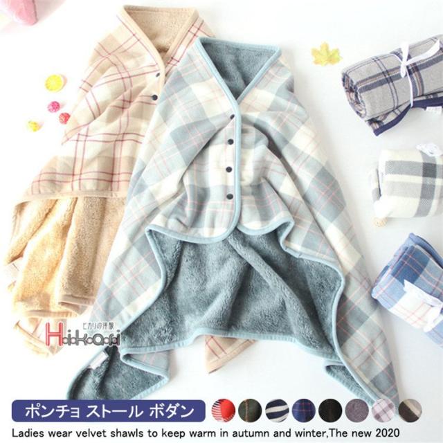 ■ストール ブランケット ひざ掛け 100*140cm ポンチョ マント ケープ 大判 裏起毛 レディース 男性 女性 冷え対策 モコモコ 着る毛布 チェ