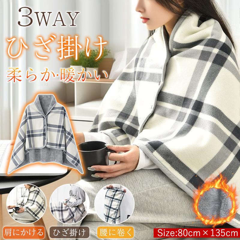 即納 大判ブランケット ひざ掛け 肩掛け ポンチョ ケープ 着る 厚手 ボタン付き 裏起毛 裏ボア ふわふわ 毛布 暖かい 極暖 チェック柄 冬用 3ways