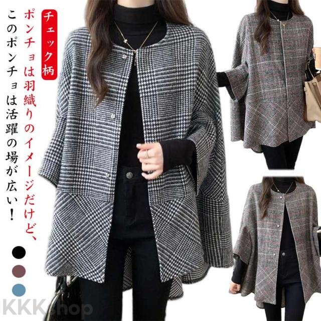 ショートコート 羽織り 気質 レディース 秋 マント トレンチコート ポンチョ コート ジレ チェスターコート ケープ チェック柄 ジャケット こなれ感 アウター 大きいサイズ ゆったり ショート丈 ポンチョコート 前開き 冬 ゆったり コート 大人 20代 30代 40代