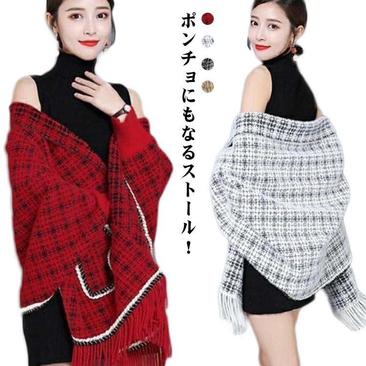 ■袖付き ストール ドルマン レディース 大判ストール ストール風 カーディガン チェック柄 ポンチョ ショール マフラー マント ケープ フ