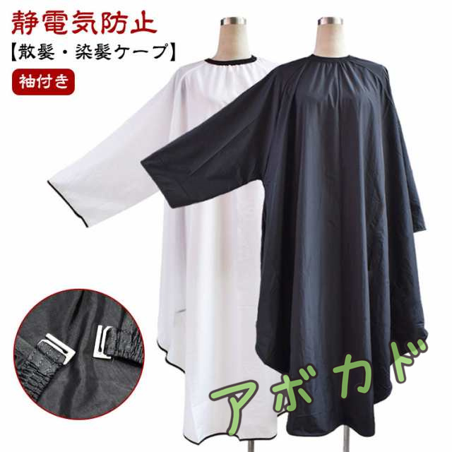 散髪ケープ セルフカラー カットクロス 染髪ケープ ヘアカット 散髪 散髪マント ケープ セルフカット 散髪ケープ ヘアエプロン 袖付き 静電気防止加工 ヘアサロン 美容院 自宅 業務用 黒 白 ホワイト ブラック