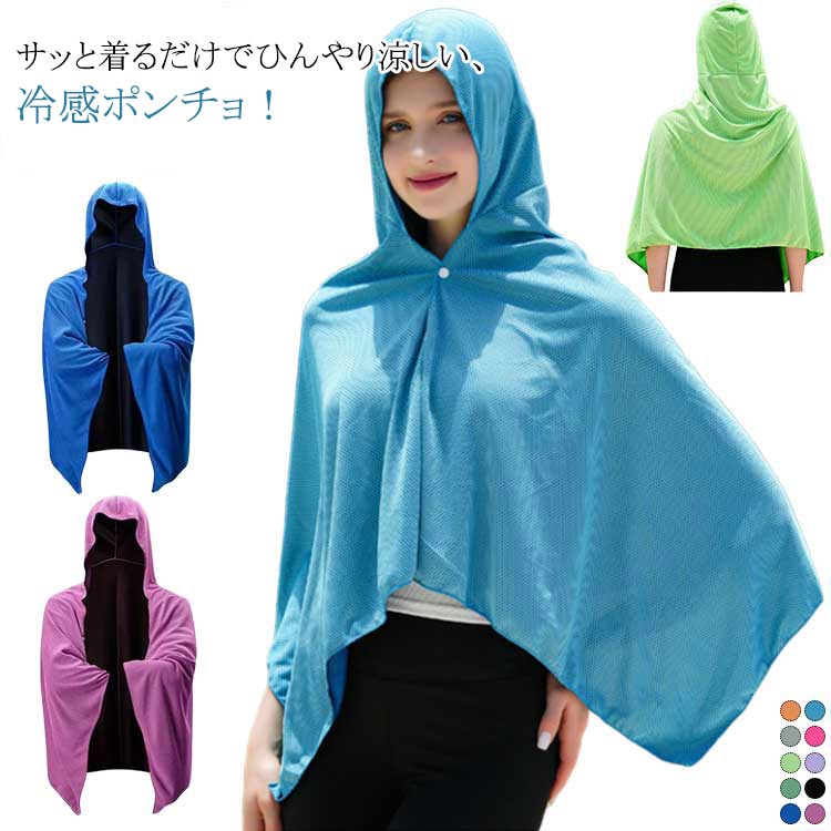 ■冷感アイテム 涼しい ポンチョ クールパーカー 日焼け対策 冷感ポンチョ 冷感ポンチョ ひんやり ケープ 熱中症対策 冷感タオル UVカット