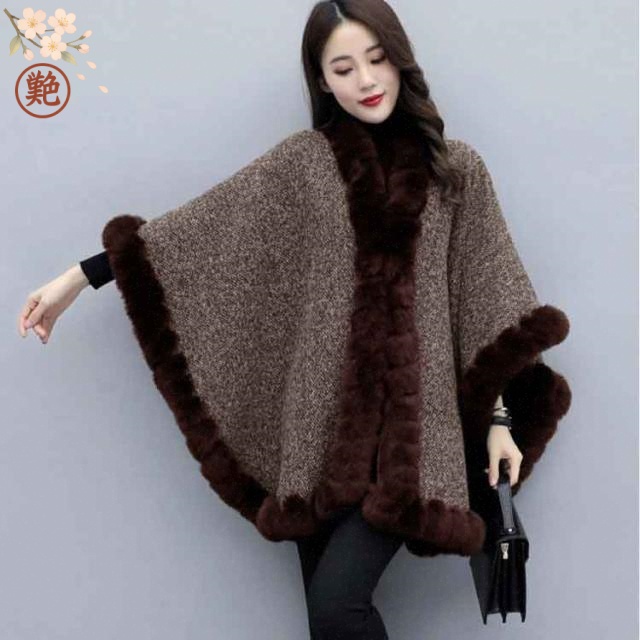 ■コート ケープ 秋冬 羽織 レディース ミドル丈 マント アウター ポンチョ風 ロングコート ポンチョ 無地 ファーコート 上着 防寒 暖かい