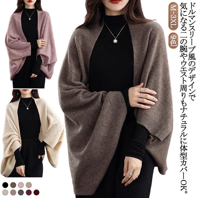 ■ストール 秋冬 ドルマンスリーブ 秋冬 長袖 レディース 秋 ポンチョ ハイゲージニット カーディガン とろみ 羽織り ボレロ ケープ マント