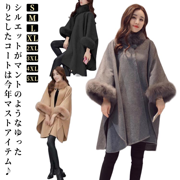 ■マントコート トレンチコート マント レディース アウター ファーコート コート ファー付き 高見え ケープコート ポンチョ ケープ チェス