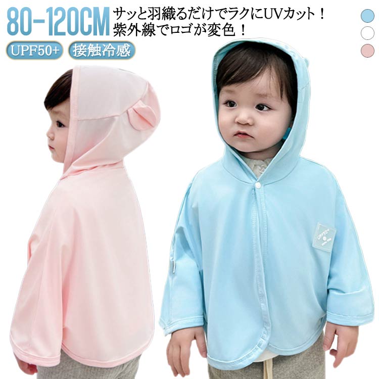 ■ベビー フード ケープ くまさん 紫外線で柄が浮き出る♪ UVカット ポンチョ UPF50+ 新生児 耳付き UVカットパーカー 80cm 100cm 120cm 接