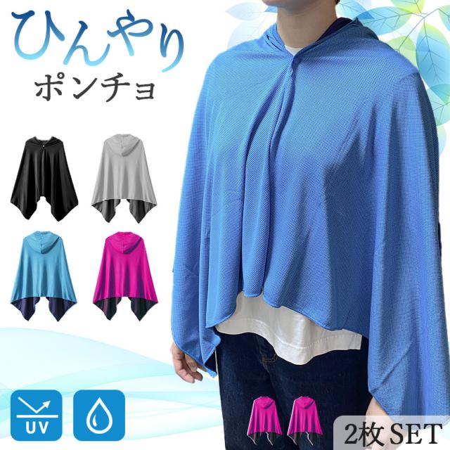■冷感ポンチョ 4色選べる 2枚セット クール ケープ パーカー 冷感タオル 熱中症対策 ひんやりグッズ UV 紫外線対策 日焼け防止 フード付き