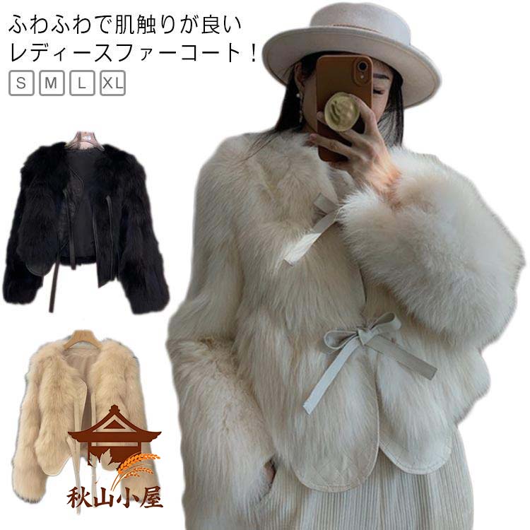 ショート丈 ファーコート レディース フェイクファー コート ショート ブルゾン ノーカラー ジャケット ケープ ファーケープ 秋冬コート ふわふわ