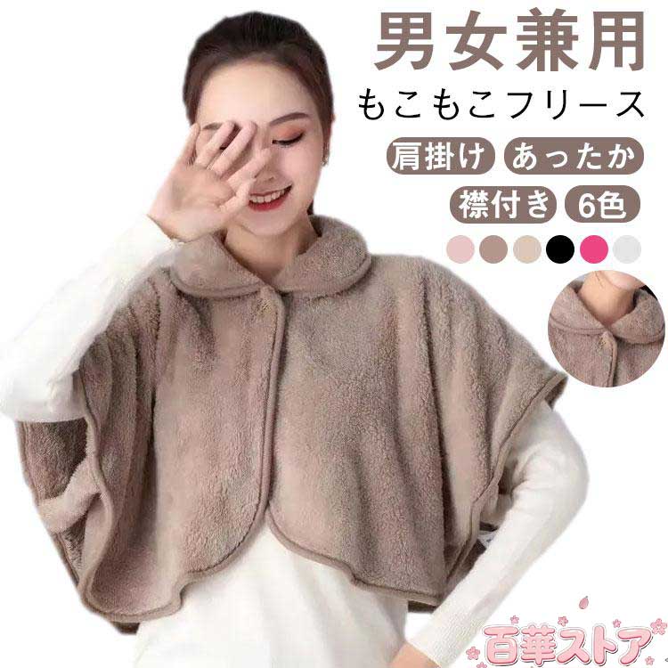 ■ポンチョ 衿付き ルームウェア もこもこ あったか 肩掛け 肩あて モコモコ レディース メンズ ケープ 【送料無料】半袖 肩当て 肩冷え防