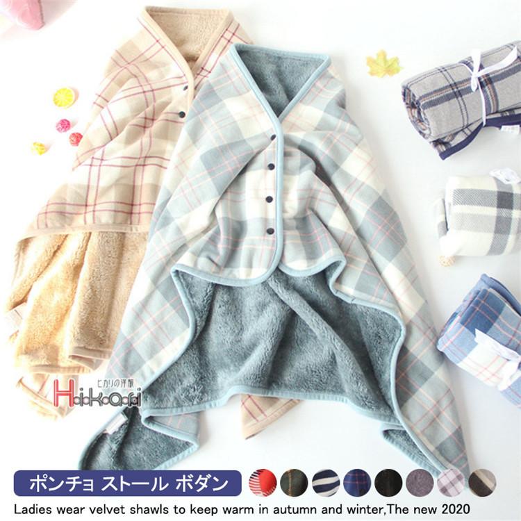 ポンチョ ストール レディース メンズ 大判 ボタン付き コート マント マフラー 秋冬 裏起毛 ケープ アウター