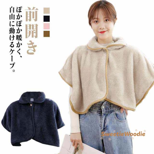 肩当て ふわふわ 肩掛け ケープ ボアフリース ルームウェア あったか 半袖 着る毛布 衿付き 部屋着 前開き 羽織 肩掛け 肩当て 着るブランケット