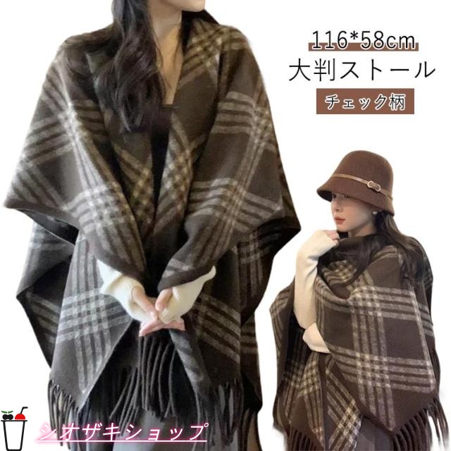 レディース チェック柄 大判ストール ストール マントコート ケープ ショール マフラーコート レディース ポンチョ 肩掛け 防寒着 秋冬 アウター レトロ風 きれいめ おしゃれ 30代 40代 50代